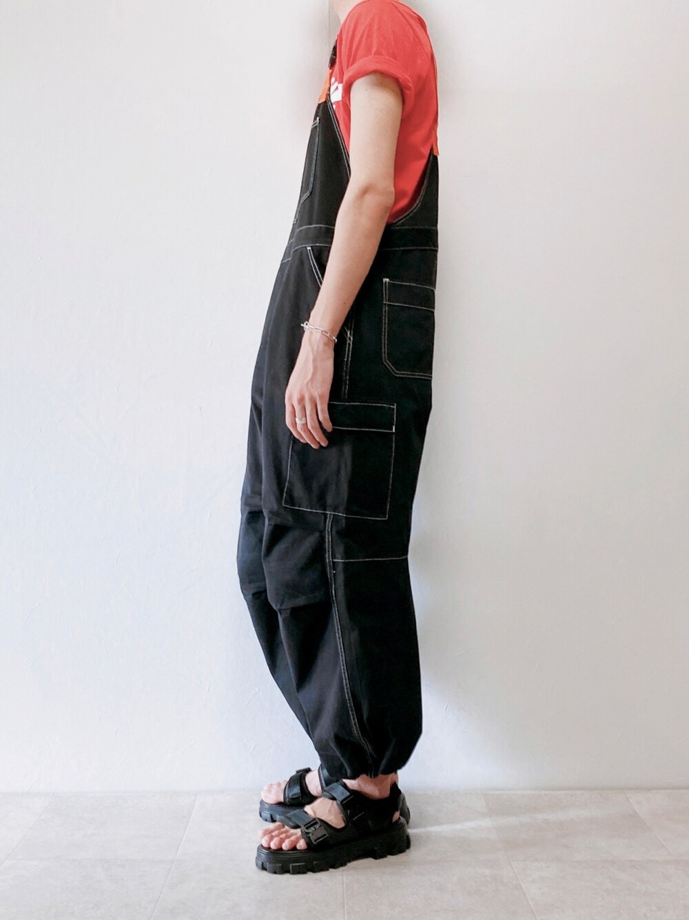ちょびのサロペット/オーバーオール「EDWIN エドウィン WEB限定【ユニセックス】 EDWIN STEPMARK バルーンオーバーオール サロペット ビブ カーゴパンツ」を使ったコーディネート