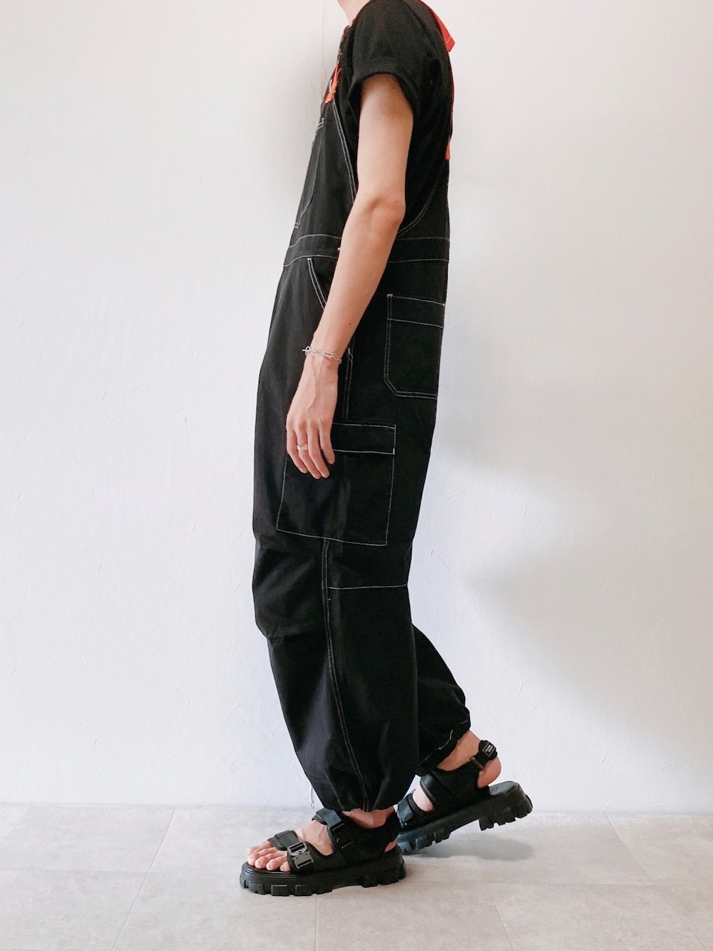 ちょびのサロペット/オーバーオール「EDWIN エドウィン WEB限定【ユニセックス】 EDWIN STEPMARK バルーンオーバーオール サロペット ビブ カーゴパンツ」を使ったコーディネート