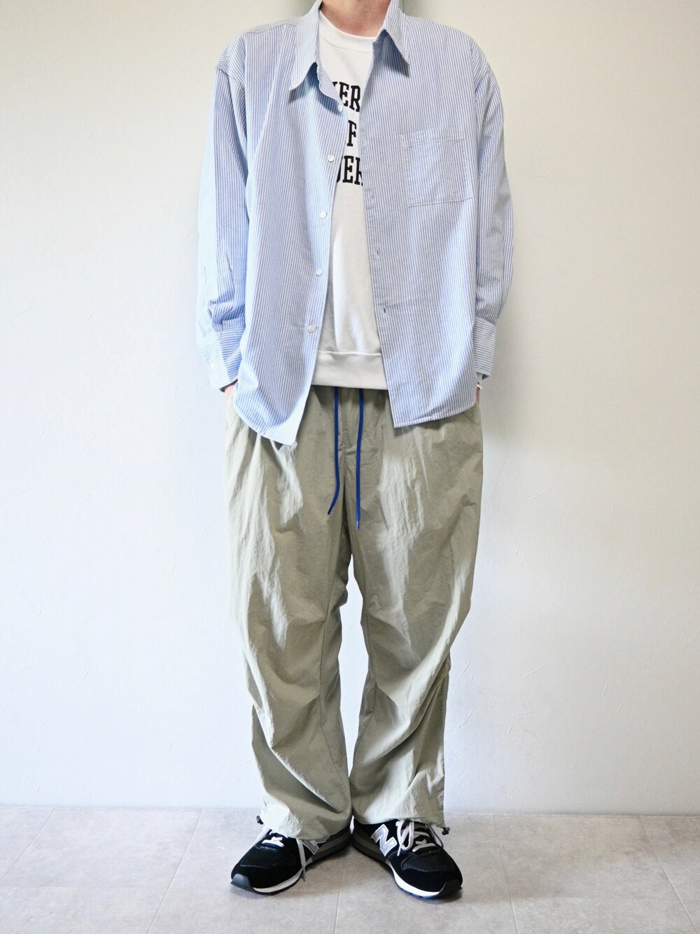 いつもありがとうございます 春コーデ ▪️EDWINのビッグシャツ 身幅が大きくストリート感満載のシルエット 綿100%の素材でイージーケア 通年使える素材 ▪️ NO NEEDのスノーイージートレーニングパンツ ヒルナンデス!で紹介されたスノーカモパンツ 程よいワイドストレート・ウエストはイージーデザイン+ひも付きの為、男女兼用できるサイズ感 グレー生地にブルーのひも可愛いですよね