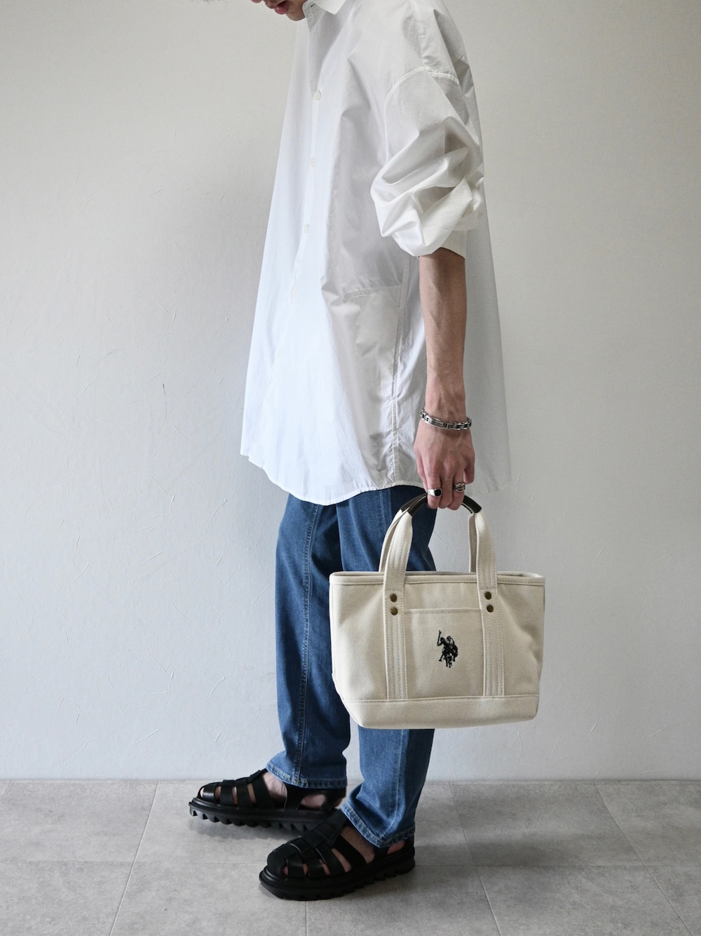 ちょびのトートバッグ「【U.S. POLO ASSN.】 ユーエスポロアッスン キャンバス ロゴトートバッグ USPA-1862」を使ったコーディネート