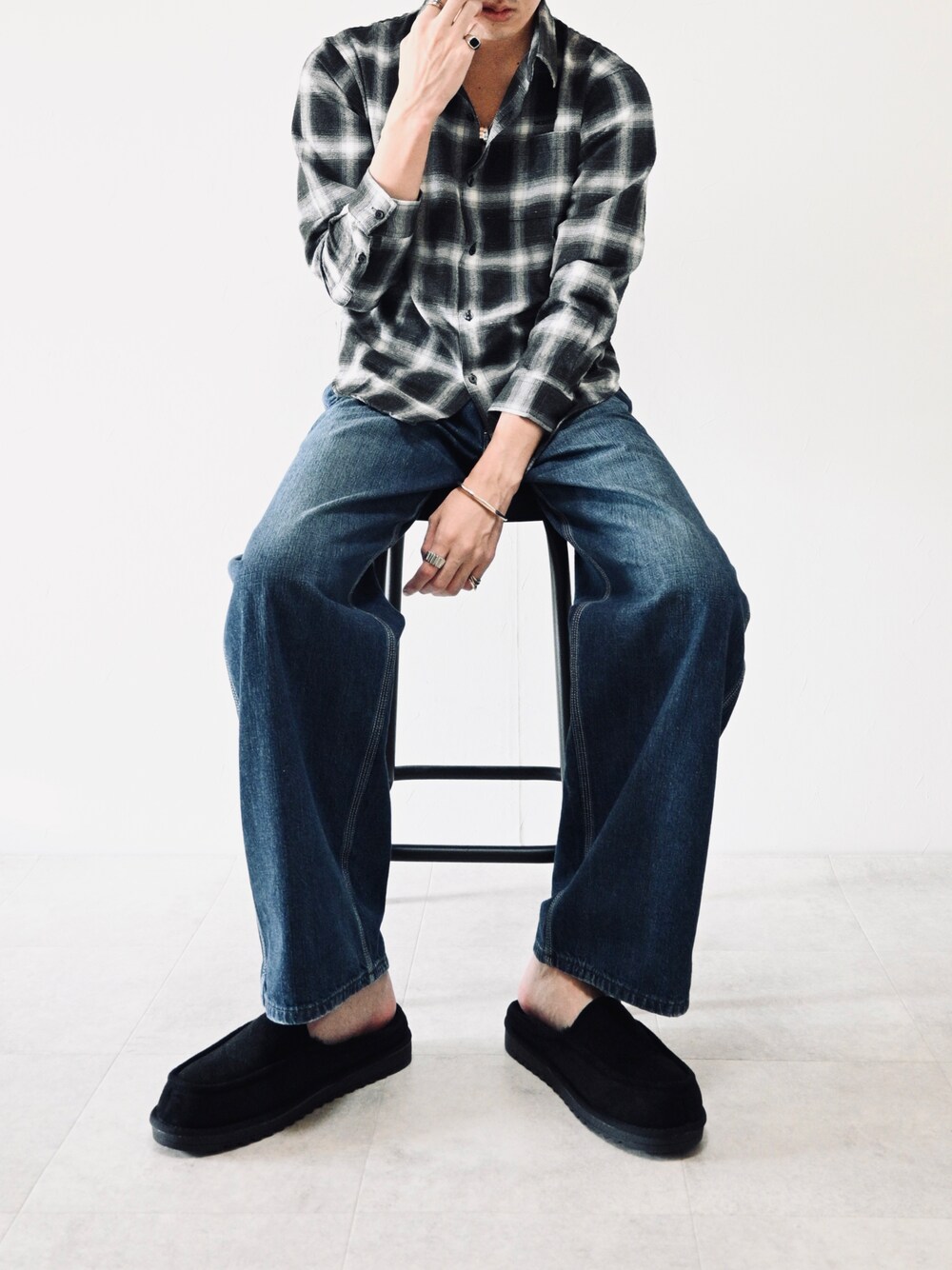 ちょびのシャツ/ブラウス「【SOMEDIFF】ピグメント加工オンブレチェックネルシャツ メンズ ブロックチェック 長袖シャツ ビッグシルエット 春服」を使ったコーディネート