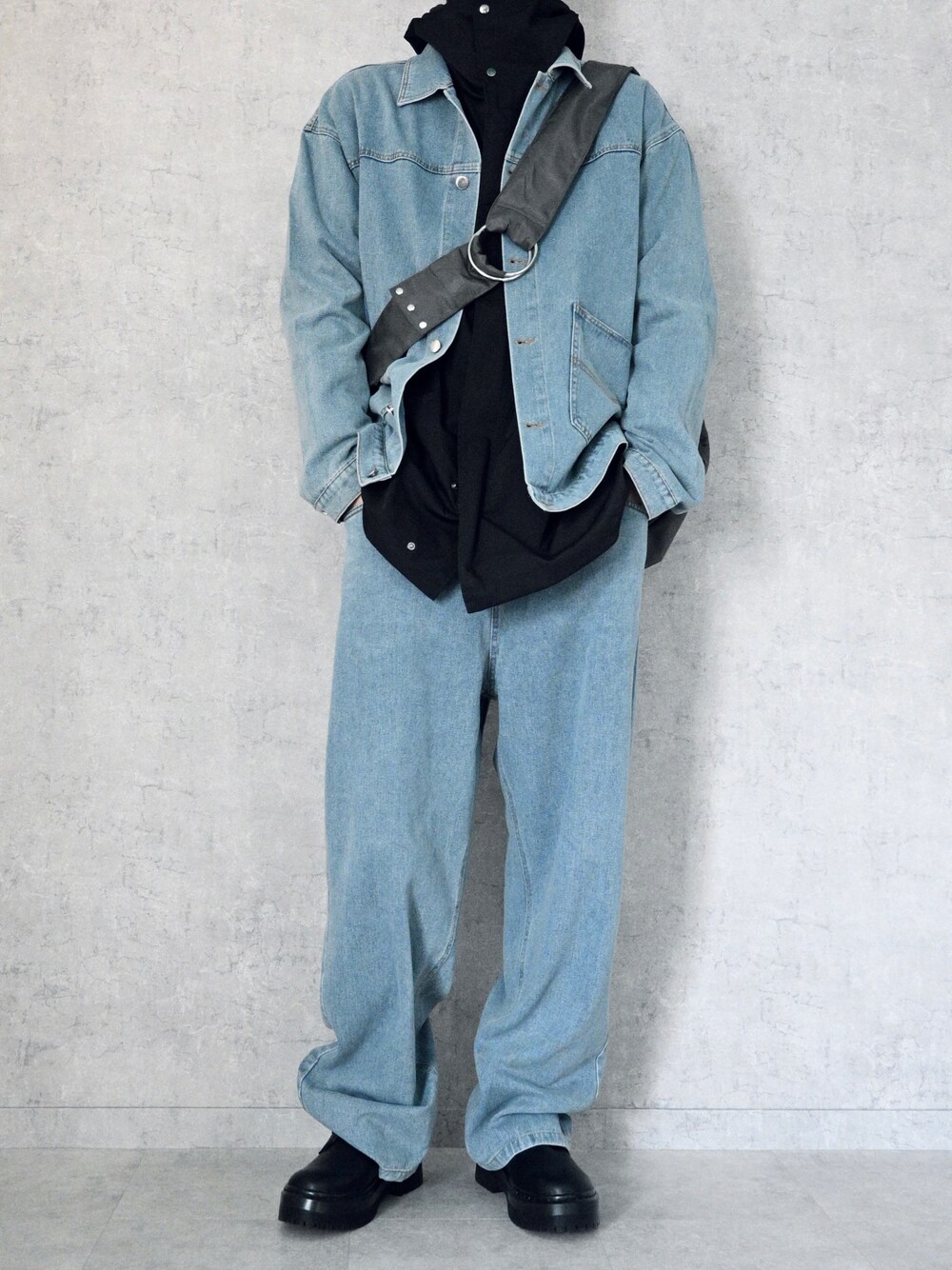 ちょびのデニムジャケット「ビッグポケットオーバーサイズ デニムカバーオールジャケット / セットアップ可能」を使ったコーディネート