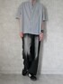 ちょびのシャツ/ブラウス「コットンブロード バンドカラー 半袖シャツ」を使ったコーディネート