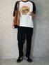 ちょびのTシャツ/カットソー「oversize raglan sleeve print long sleeve T-shirt/オーバーサイズ ラグランスリーブ プリント ロンT/リンガー プリント ロンT」を使ったコーディネート