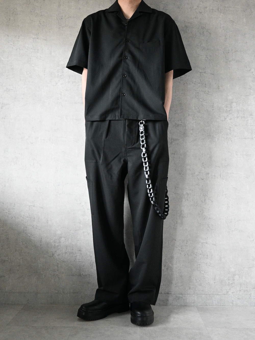 春はセットアップ RHYTHR 25SSアイテム 通常販売開始 ▫️ CLEAR TWILL OPEN COLLER SHIRTS ¥6,800 しなやかで上品な印象の綾織物 胸の箱ポケットや裾両脇のベンツ仕立てのスリット、後中心の切替えなどにジャケットのような仕様を採用 ▫️CLEAR TWILL TOOL PK PANTS ¥8,400 ツールを入れるポケットのデザインはそのままに、前開きを内掛け釦、ウエスト調節タブなど スラックスのようなクリーンなディテールを落とし込んだ