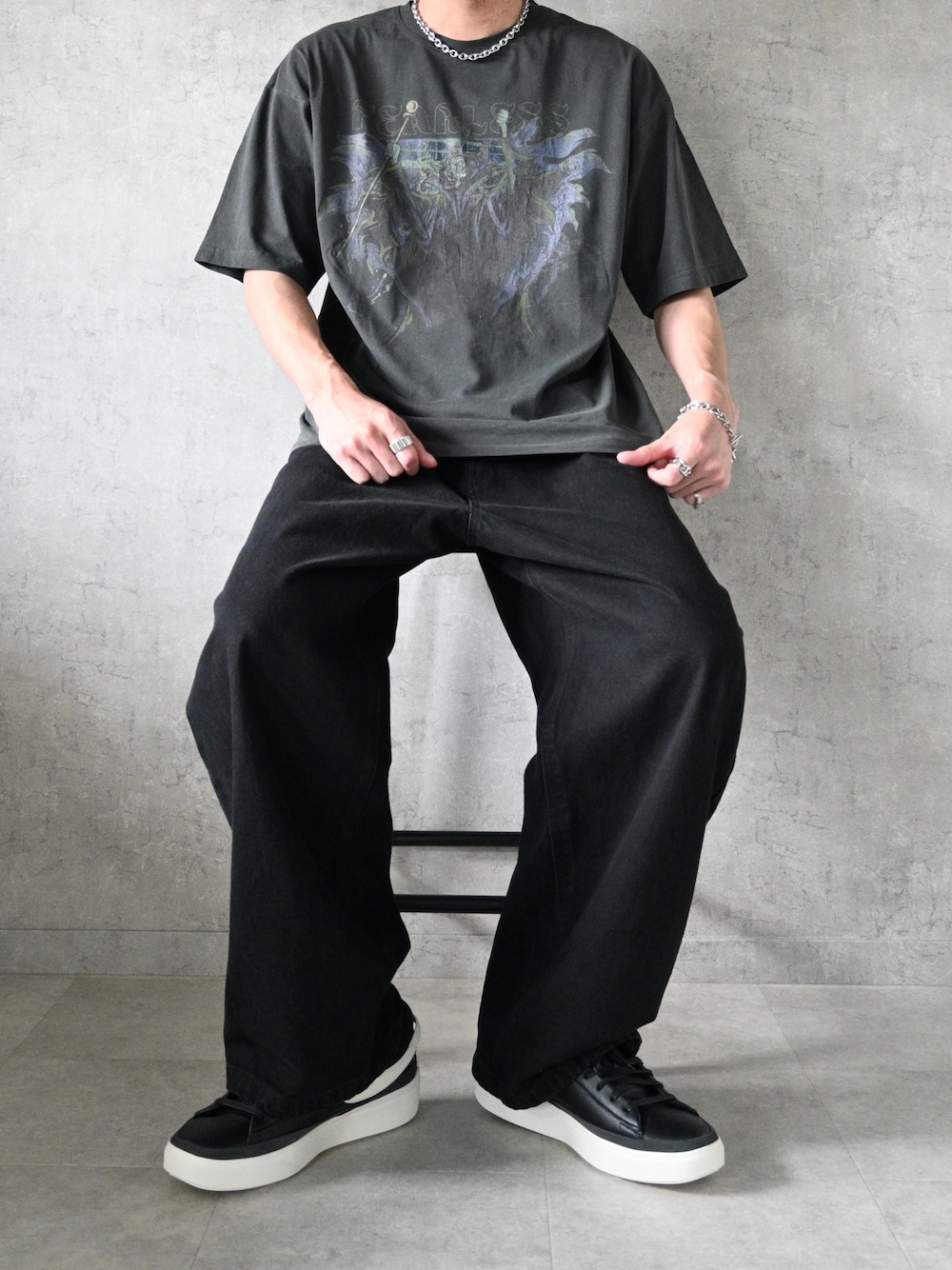 ちょびのTシャツ/カットソー「25SS 新柄追加【Disney / ディズニー】Villains /ヴィランズ ヴィンテージライク ピグメント加工 ビッグシルエット 半袖プリントTシャツ カットソー メンズ レディース」を使ったコーディネート