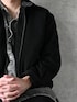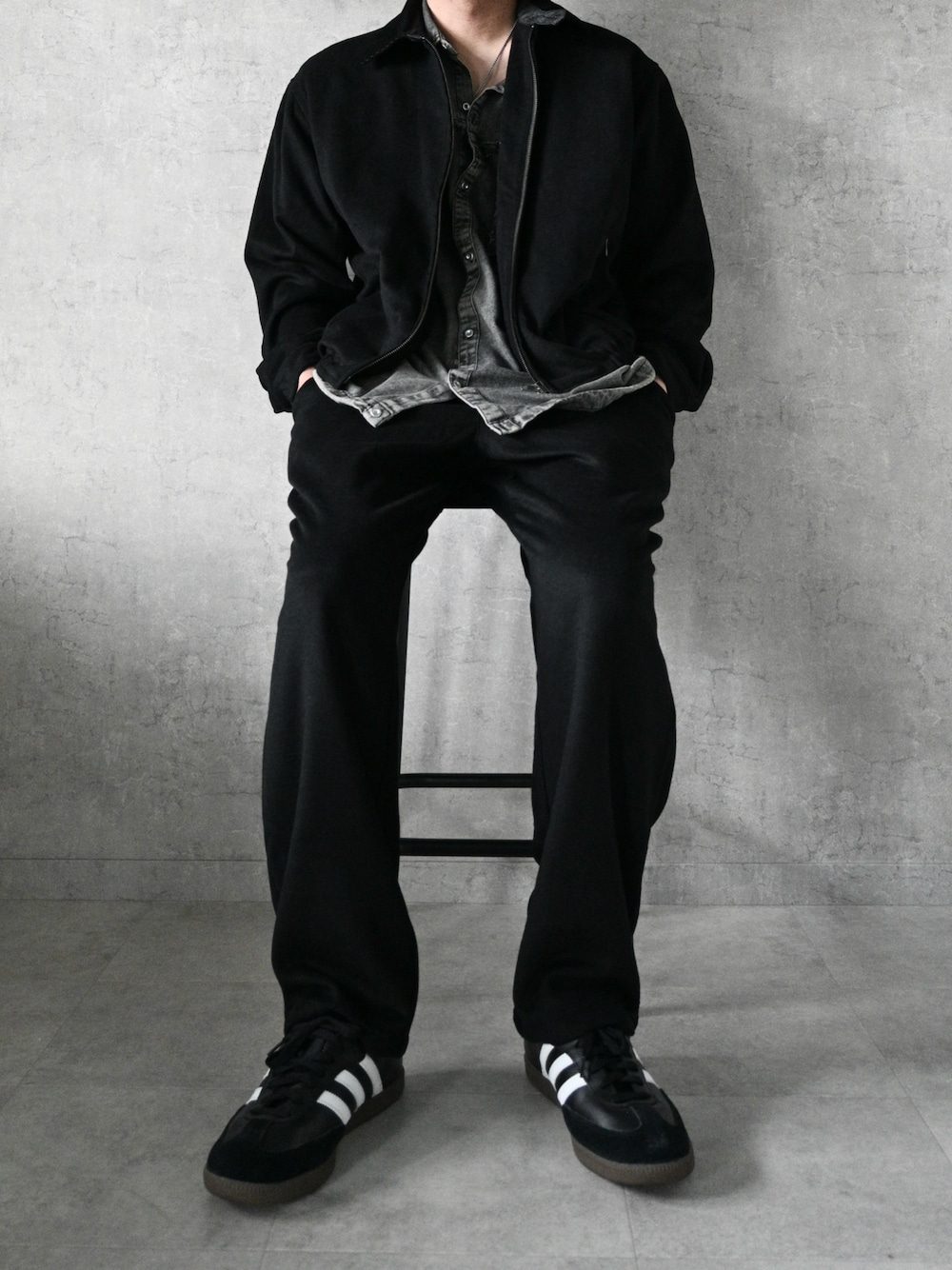 RHYTHR のセットアップ ウール50%混のフラノ生地 しっかりしたあったかめのセットアップ 衿コーデュロイ、Wジップ ウエストはオールゴム