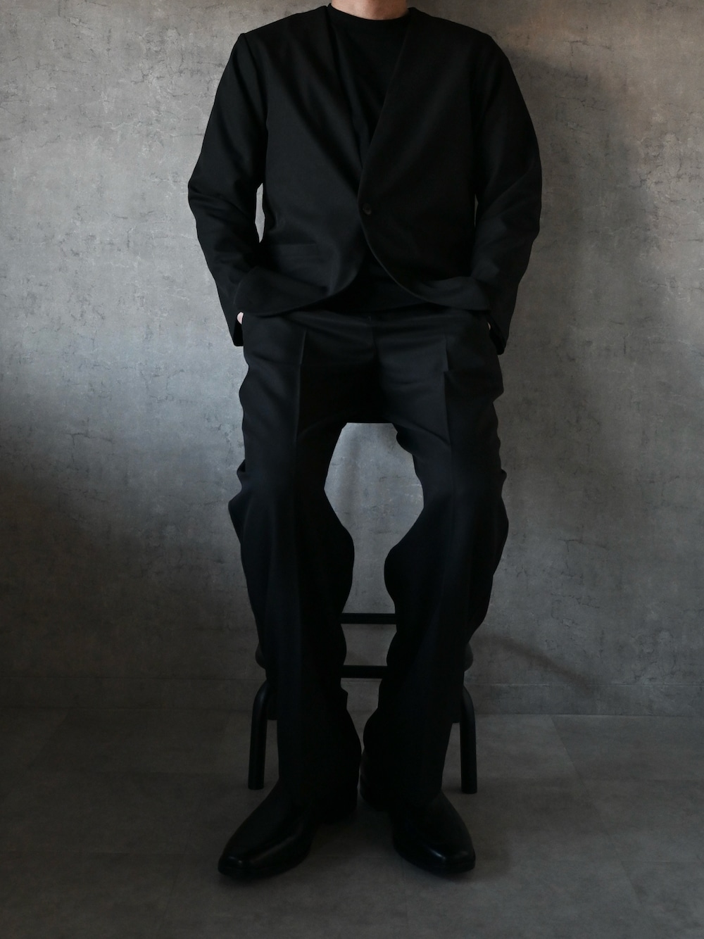 ちょびのセットアップ「【EASENCE】パウダーツイル セットアップ ノーカラージャケット&ワイドパンツ<イージードライ/マシンウォッシャブル>」を使ったコーディネート