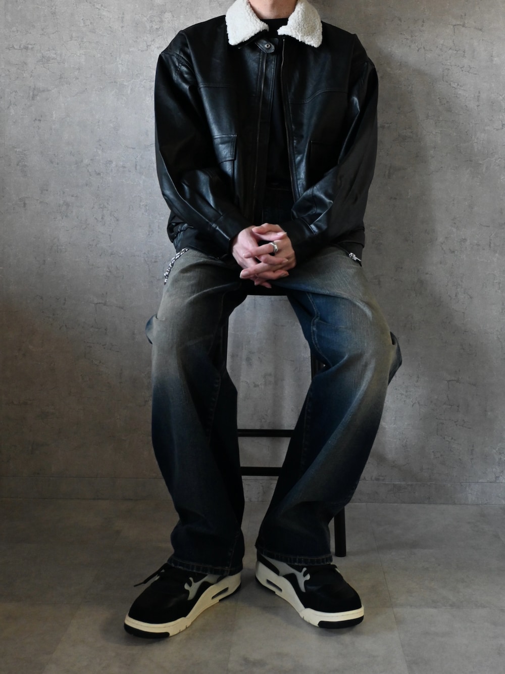 ちょびのブルゾン「2way ヴィンテージライク PU レザー 襟ボア A-2 G-1 ジップアップ ブルゾン レザレットブルゾン/ハリントンジャケット」を使ったコーディネート