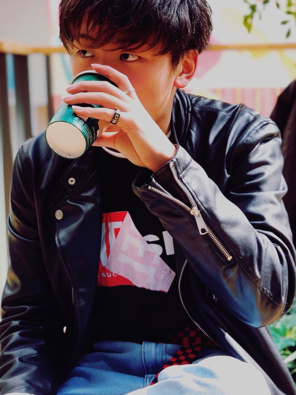 ダブルライダースを使ったコーデ🕺 春に大活躍のライダース! 皆さんのコーディネートの参考にしてもらえたら嬉しいです! 下半身は切れていますが、デニムのワイドパンツと、黒のエアーマックスを履いています👍🏻