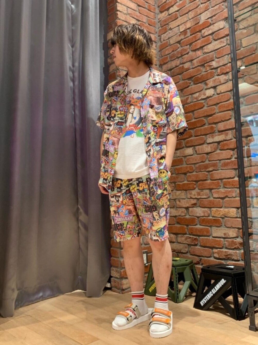 shuri(HYSTERIC GLAMOURラゾーナ川崎プラザ店)のシャツ/ブラウス「SUMMER OF 70S柄 オープンカラーシャツ」を使ったコーディネート