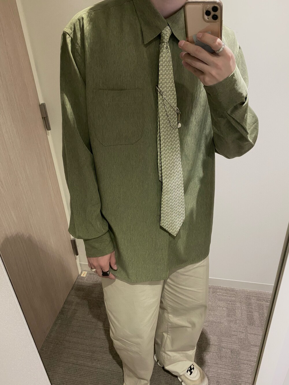 今日は全身柔らかめになりました! シャツネクタイのドレススタイルにスニーカーを合わせました。 OAMCとadidasのコラボでデザイン性が高く、アクセントになります!