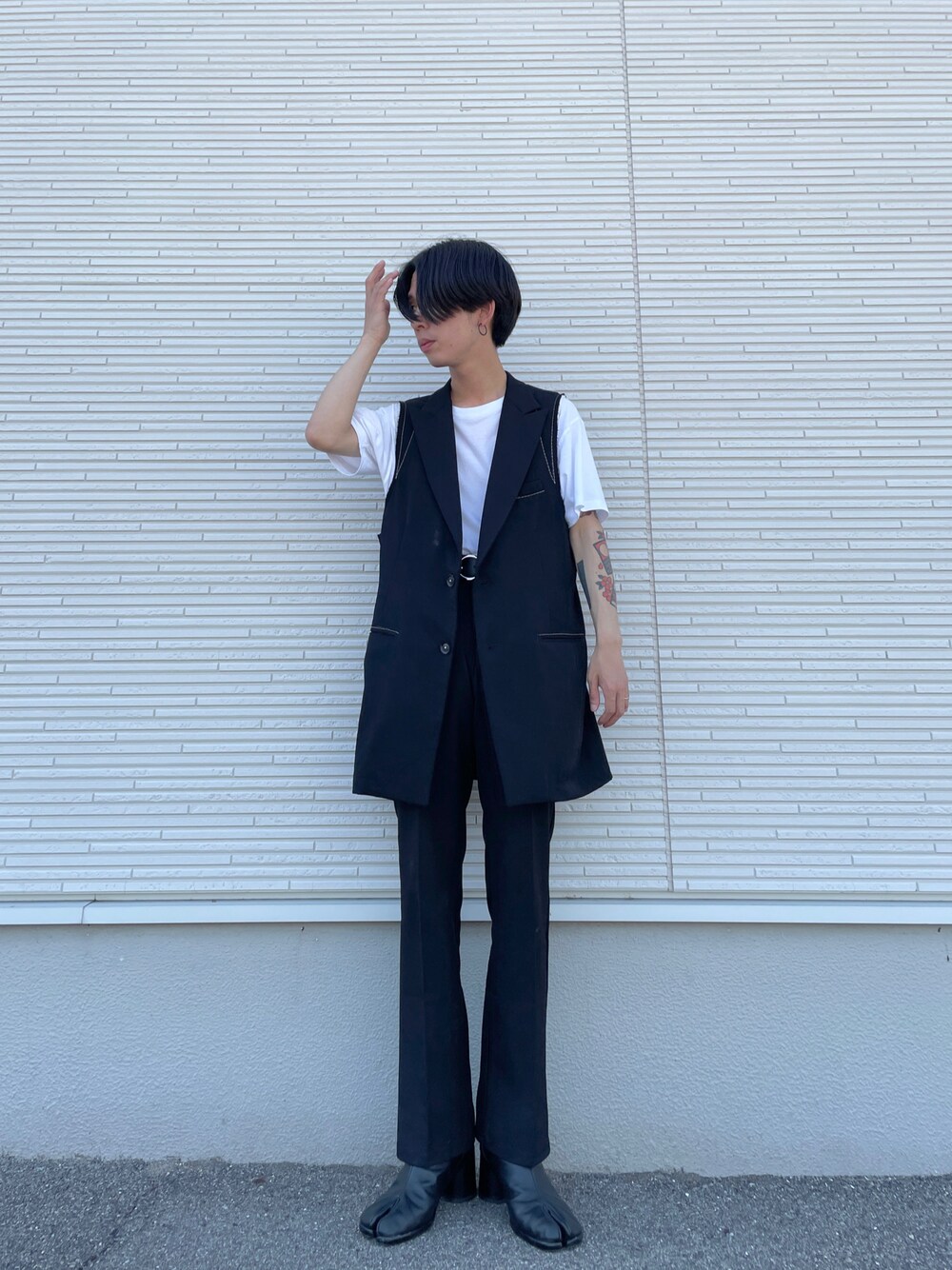 袖部分が断ち切りになったベスト。 合わせ方無限大で楽しい👌