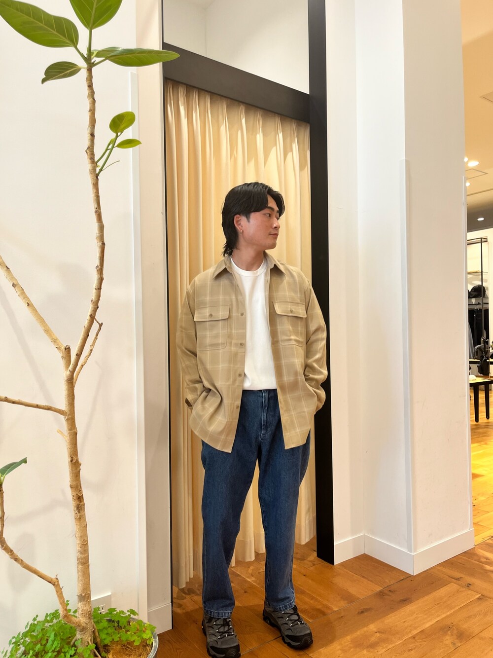 柊のデニムパンツ「ツータックデニムトラウザー」を使ったコーディネート