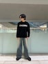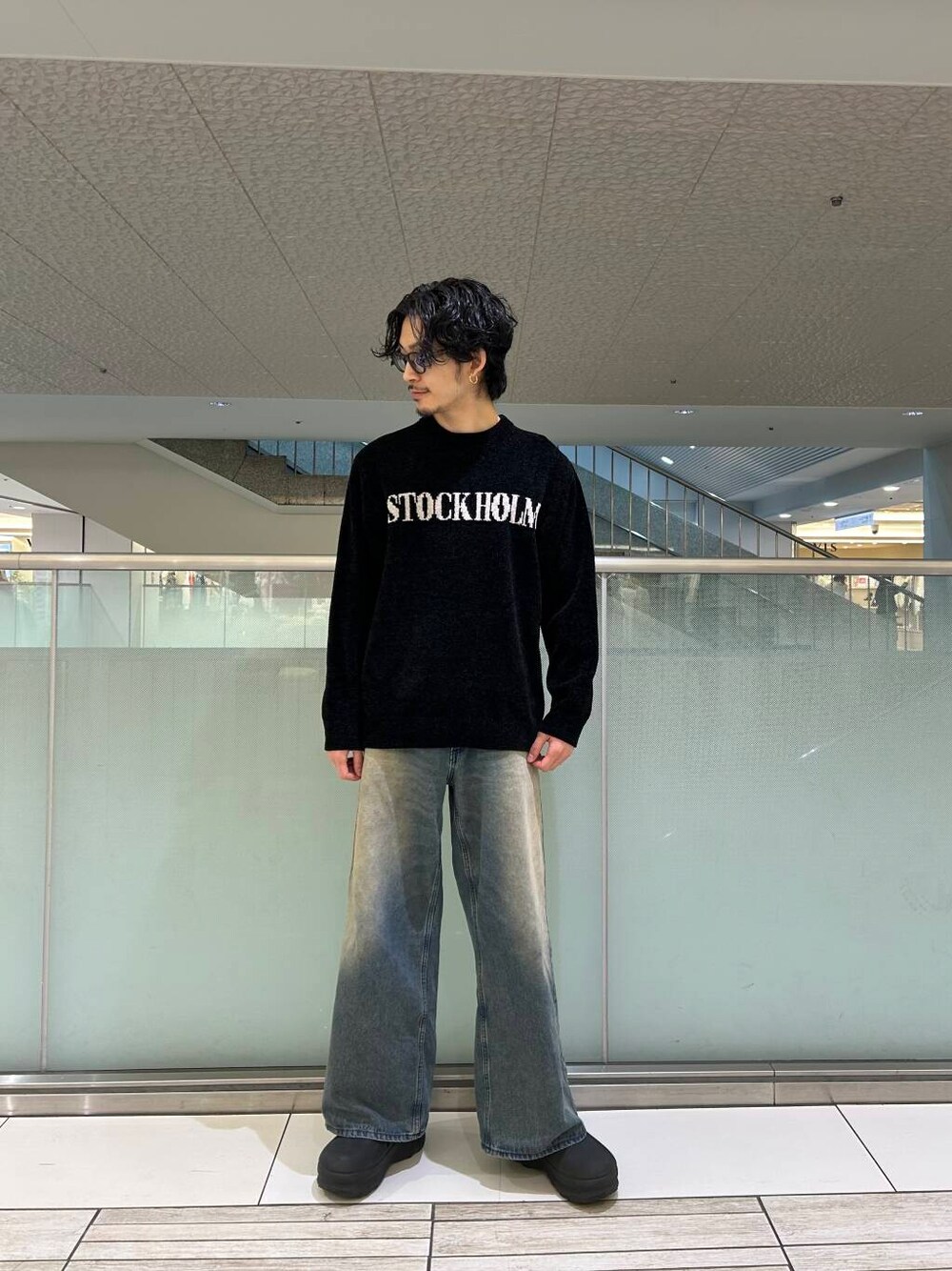 ワンポイントのロゴデザインが入ったニットとデニムを合わせたカジュアルニットコーデです! ニットの素材感は肌触りがよく生地も厚めなのでアウターのインナーとしても活躍間違いなしです! 是非ご参考に!!