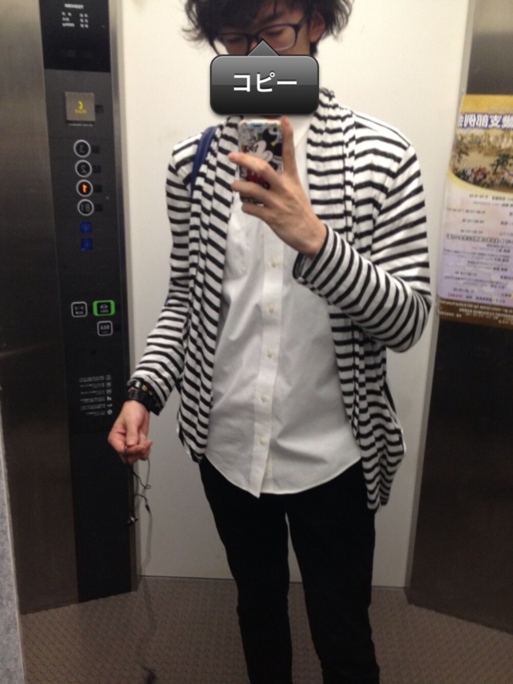 ホワイト系のカーディガン/ボレロを着用したメンズの春コーディネートの1枚目の写真