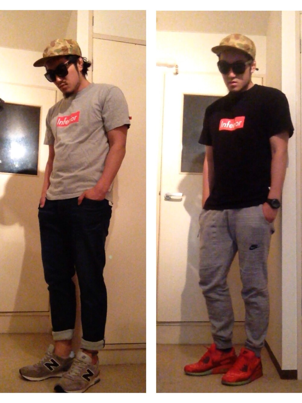 雨ですなー 梅雨入りするのかー 湿気で髪クルクルになるよー (まぁ今髪ないからならないけど…) 昨日のウォーキングに続いて、少しだけアイテム変えてコーデUP!! 二種類合わせてオセロみたいになりました。 あんまり変わってないので、おもしろくないですがおおめにみてやってください(´・Д・)」 マクネイリーのTシャツ色違いで持ってたので。ちなみにパンツはどっちもスウェットパンツ。もう長いのはアツイな。 ジェットキャップはM.V.Pのカモ柄。 最近ジェットキャップが似合うようになってきた気がする。個人的に。 あと余談ですが、なんか写真だとめっちゃ細く見えるんですがこんなに細くないです。 むしろただのデブです。ペヤング好きなんで。あとお腹ヘコませてます。 AJ1SB、日本でもでるのかな?NIKE.COMのみ? 知ってる方、教えてください( ̄▽ ̄) 宜しくでーす!