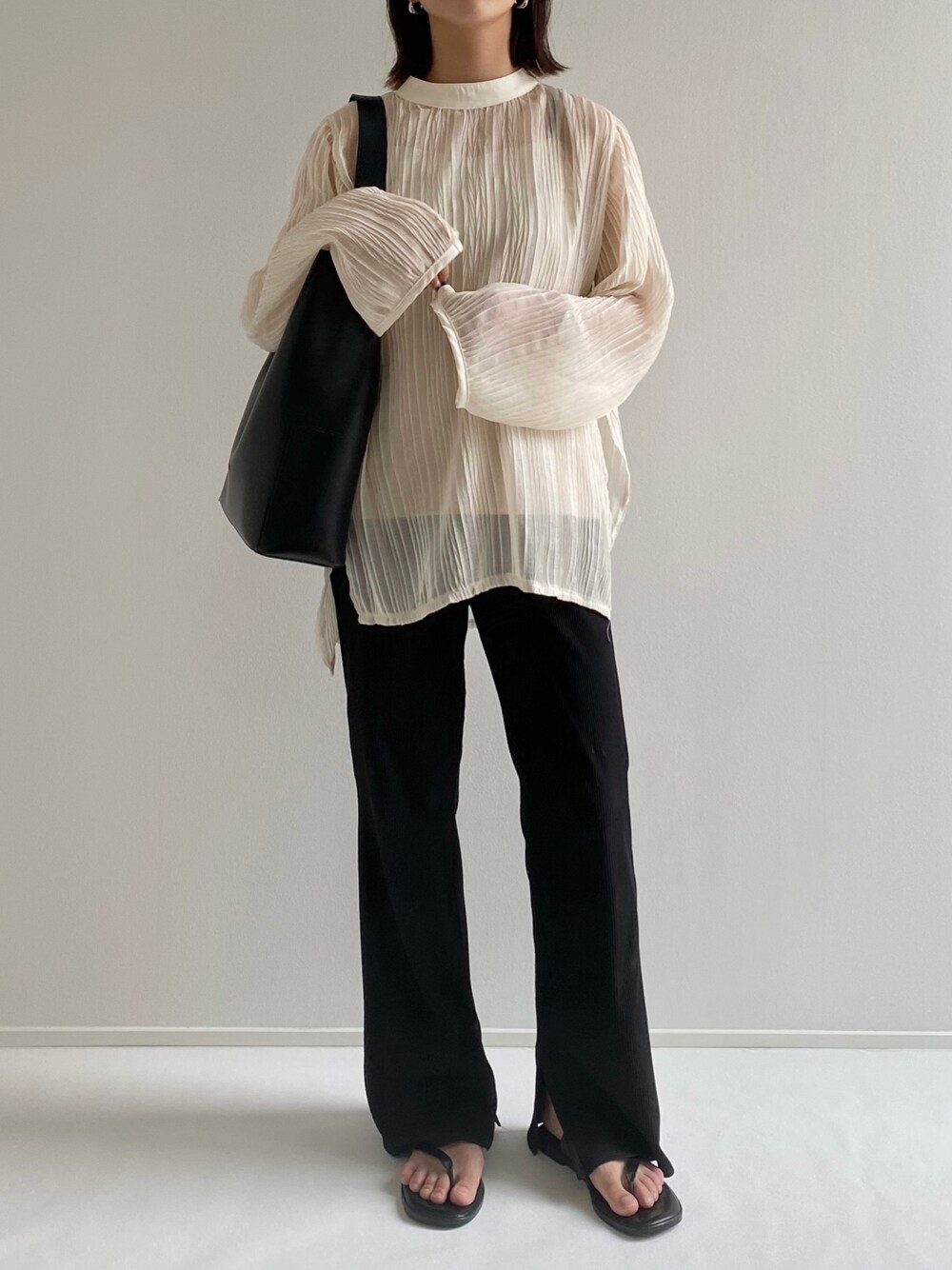 シアーのトップス使いやすくてお気に入り! 二の腕は隠せるのにシアーで抜け感出せるの嬉しい♡