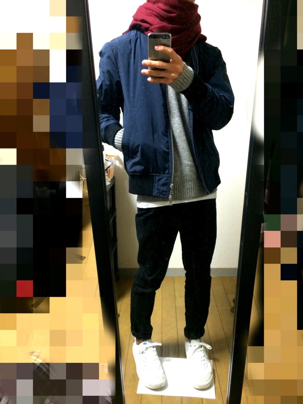 MA-1をメインに仕上げました! 差し色にワインレッドのマフラーを^^ 今日も寒いので、みなさん風邪に気をつけてくださいね!!