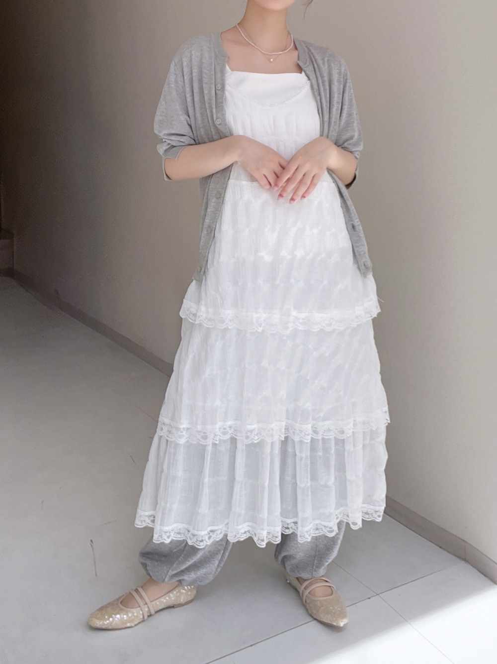 スクエアネックで華奢魅せ🫶🏻 カーディガンは肌触り良くて、ほんのり透け感があるのがポイント👍🏻 UVカット機能も付いているので夏に大活躍! ーーーーーーーーーーーーーーーーーーーーー 身長:157cm 骨格:ウェーブ