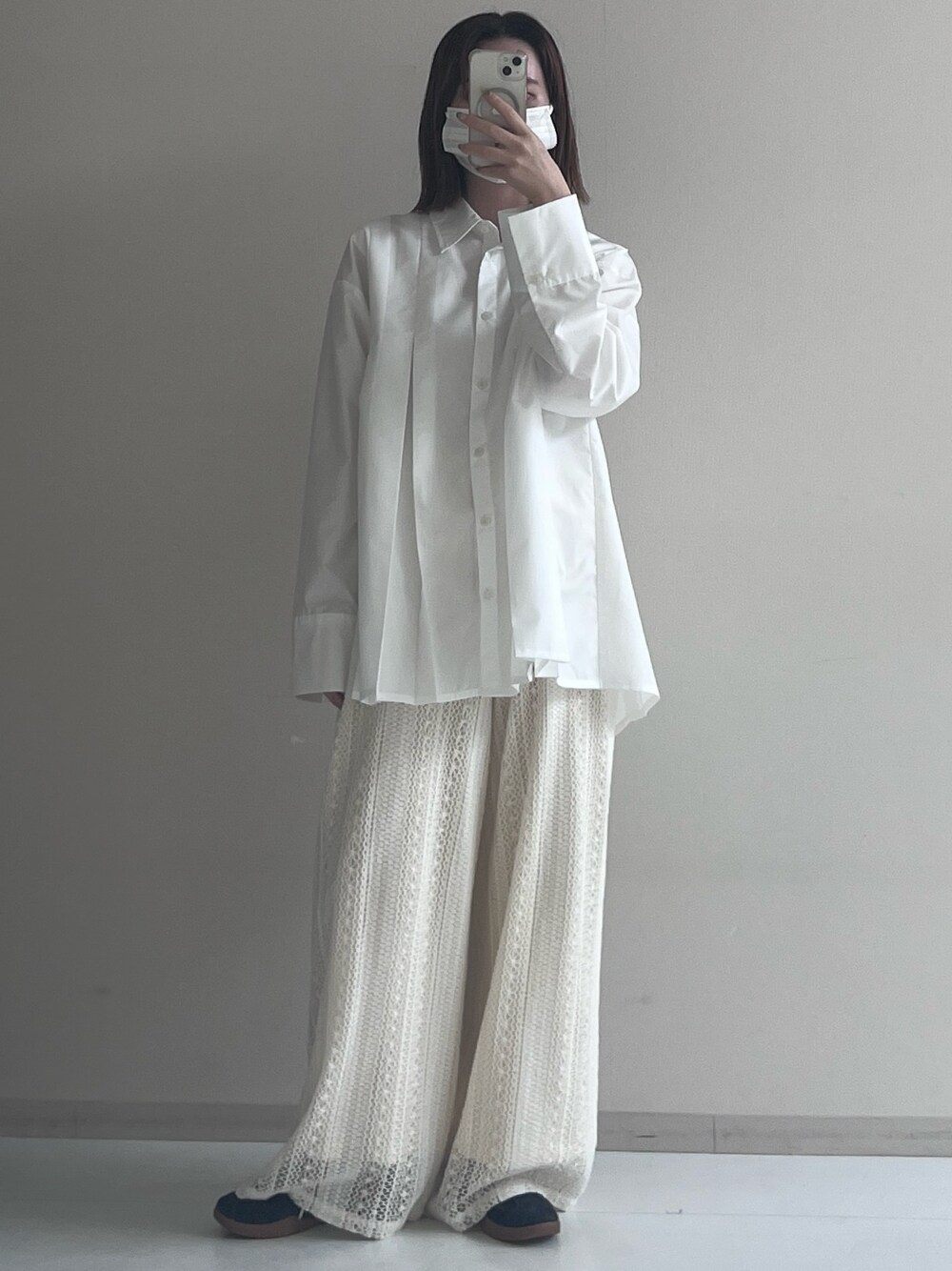 ホワイト×アイボリーの、優しいカラーリング🕊️ この透かし編みのパンツ、素材感が可愛くてお気に入り! トップスを長めの白シャツにして、あえてゆるっと着るのが👍🏻 ーーーーーーーーーーーーーーーーーーーーーーーーーーーーー 身長:157cm 骨格:ウェーブ