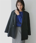 n(nissen)のテーラードジャケット「ストライプ柄ウール調ジャコット(オーバーシルエット)<大きいサイズ有>」を使ったコーディネート
