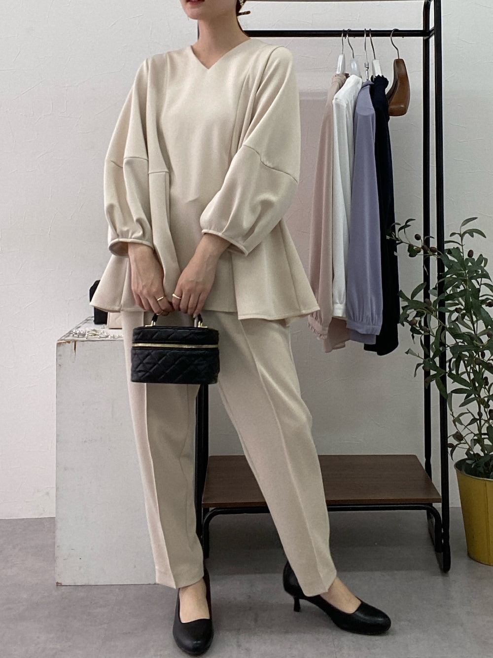 ウエストからふわっと広がるペプラムトップスは、気になる腰回りをカバーしつつ華やかさも✨ 忙しい朝もこれ1着で決まる、時短でおしゃれなセットアップ💐 ーーーーーーーーーーーーーーーーーーーーーーーーーーーーーー 身長:157cm 骨格:ウェーブ