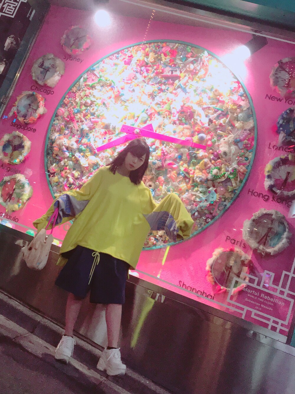 トップスは2着縫い合わさってるリメイク品らしくてめちゃめちゃ可愛い〜〜 普段着ない感じだけど色使いにシルエット感にアリじゃないですか😋