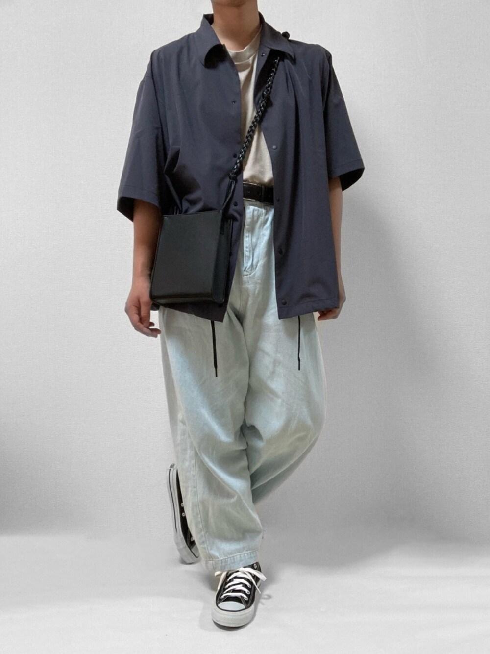 今回は薄い色のワイドデニムで爽やかな夏コーデにしました。 (タックインは脚長見えてオススメです👍)