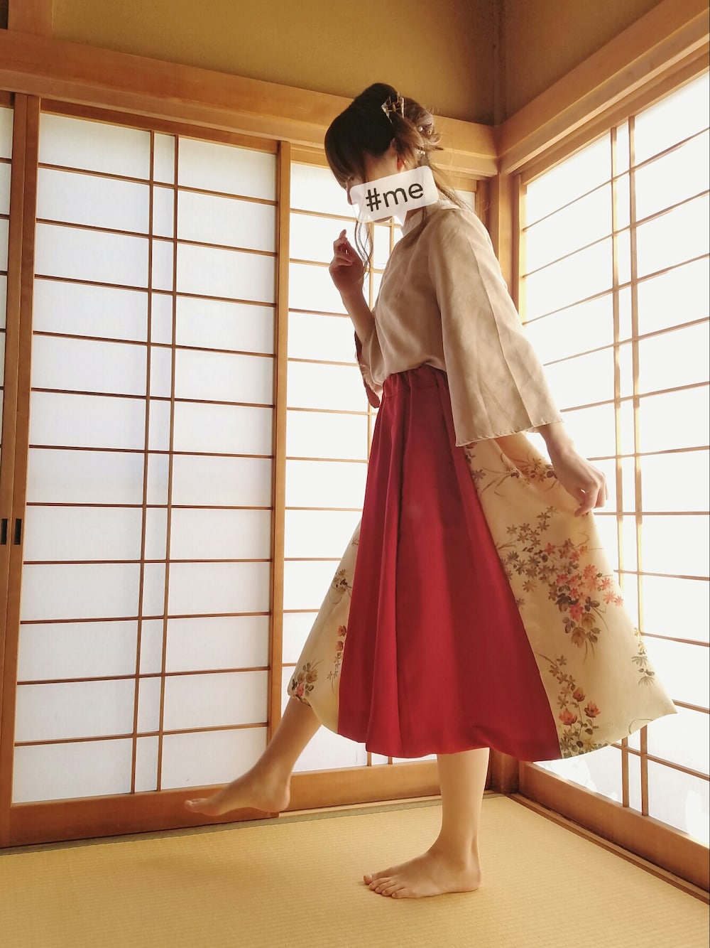 和。 着物地/和柄/日本 スカートが主役。 赤と和柄の着物をリメイクしたスカートで女性らしい上品さを。*'