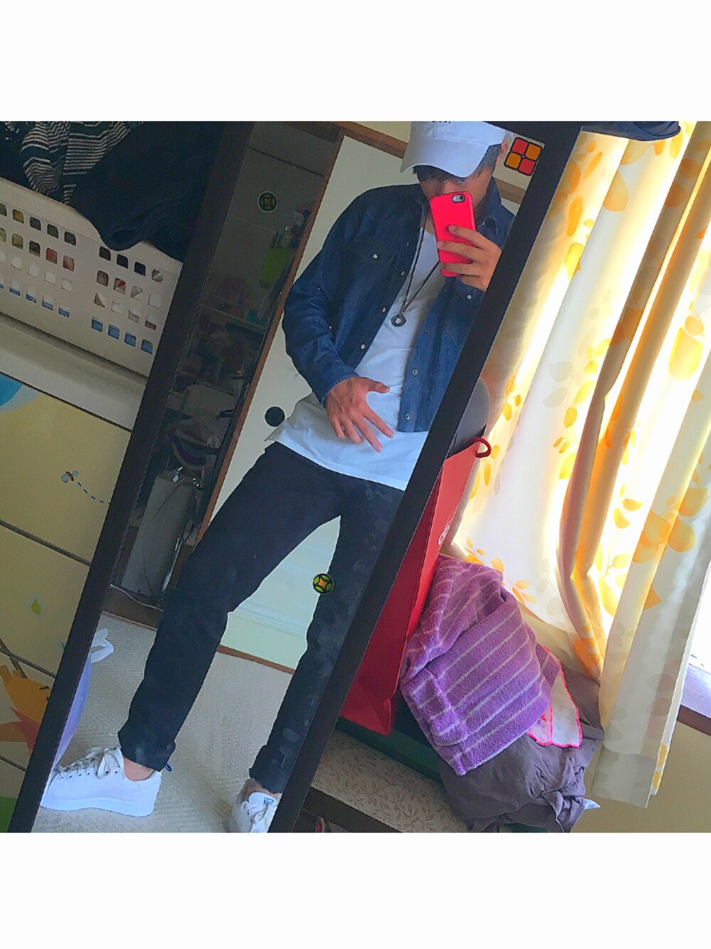 靴と帽子とトップスの色を揃えつつ デニムのアウターを着て少しアクセントをつけてみました💪 安く揃えられるのにカッコよく見えるので自分は気に入っています笑