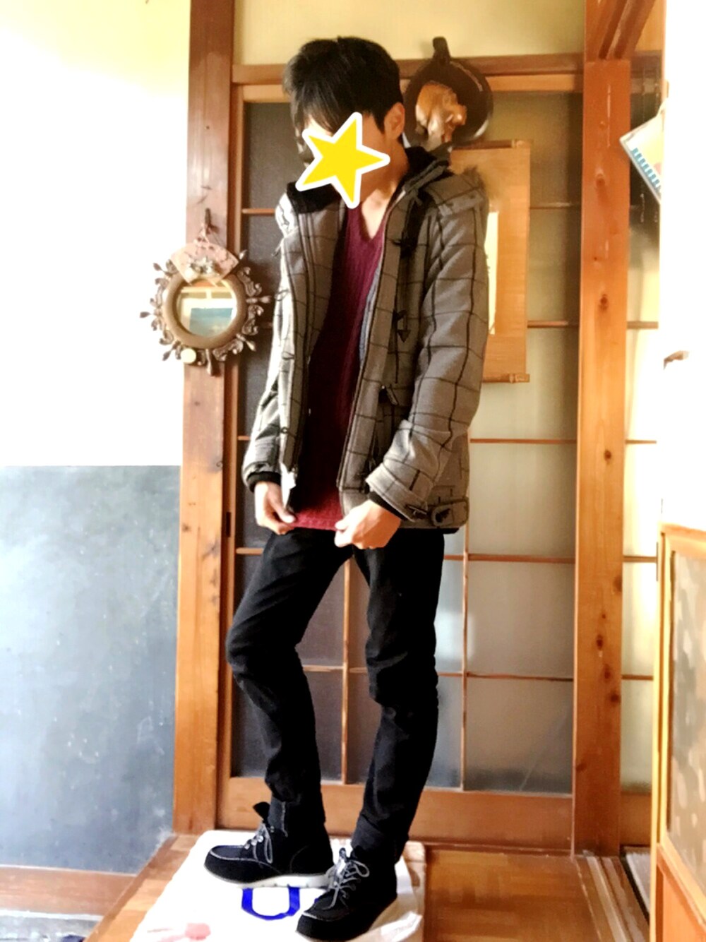 どうも! ダッフルコート×ニットソー×ストレートデニム グレーのアウター欲しいなーって思ってたら目に留まって、即買い( ˇ-ˇ ) 首元がモフモフしててとてもあったかです! メルトンなので少し重いですが、そんなことどうでもよくなるくらいいいものです! ワインレッド好きなのでこのニットソーもかなり気に入ってます\(^o^)/ そして毎回ストレートデニムなことに気付きました( ˇ-ˇ ) 次回は変えたいと思いまする。 靴は脱ぎ履きが面倒で朝時間ないからあまり履けない……… 寒くなってくると布団の戦闘力が上がるので。。。 前回も反応頂けて嬉しかったです!ありがとうございました!! では!この辺で!!