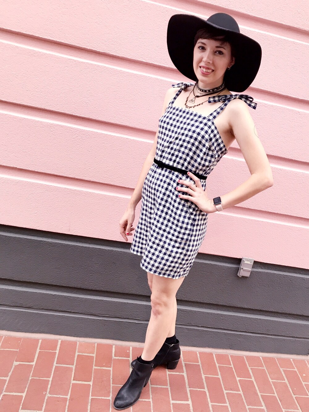 My take on the gingham trend! Layering thrifted and new necklaces creates a fun punk edge for the outfit.