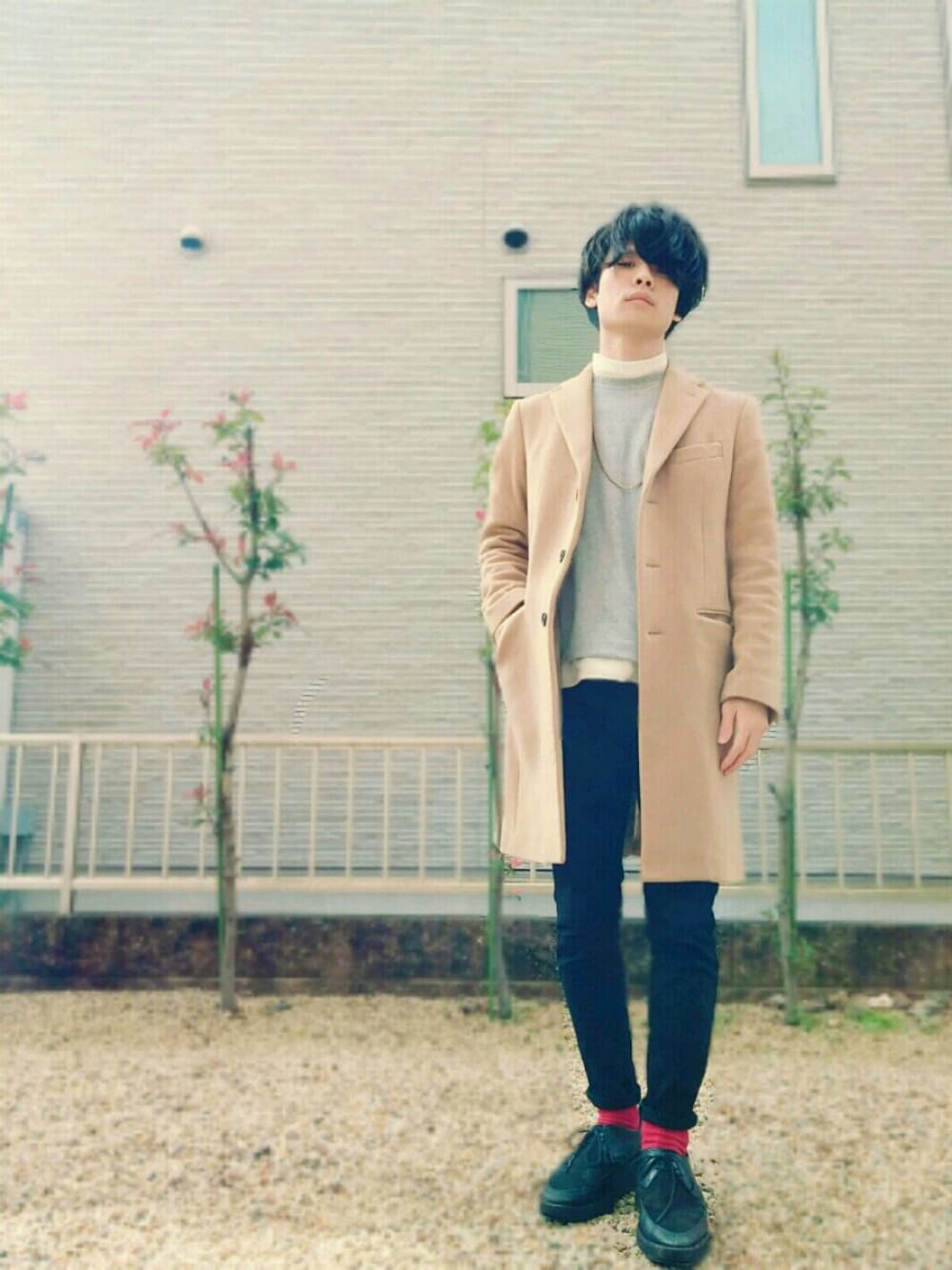 残響ロックのチェスターコート「UR PONTE TORTO CHESTER COAT」を使ったコーディネート