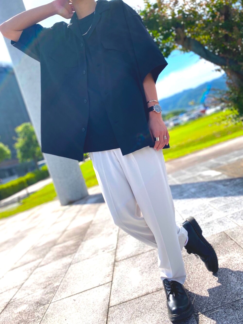 ご覧頂きありがとうございます☺ 今回もまたモノトーンコーデです! ユニクロのレディースの白のスラックスがシルエットもよく男性の方でも着やすく合わせやすいです! シルバー系アクセサリーもポイントです⭐️ Instagramもやってるのでぜひ見に来てください!!!🤩 ⤵︎⤵︎⤵︎⤵︎⤵︎⤵︎⤵︎ @sigu_re0620