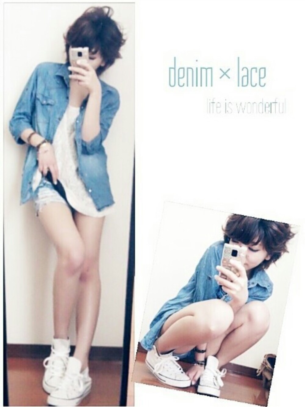 denim × lace コンバース潰し履き!