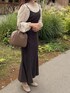 形がとっても綺麗なマーメイドキャミワンピ🧜♀️🤍 ラテカラーでまとめました🤎 🏷バックリボンマーメイドキャミソールワンピース brown/M 🏷リンクルブラウス ivory/Free me:161cm どちらもZOZOTOWNにてtimesale中です🕰