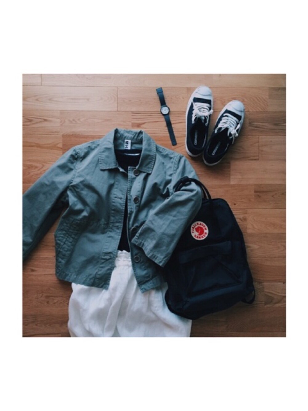 白スカート に リュック