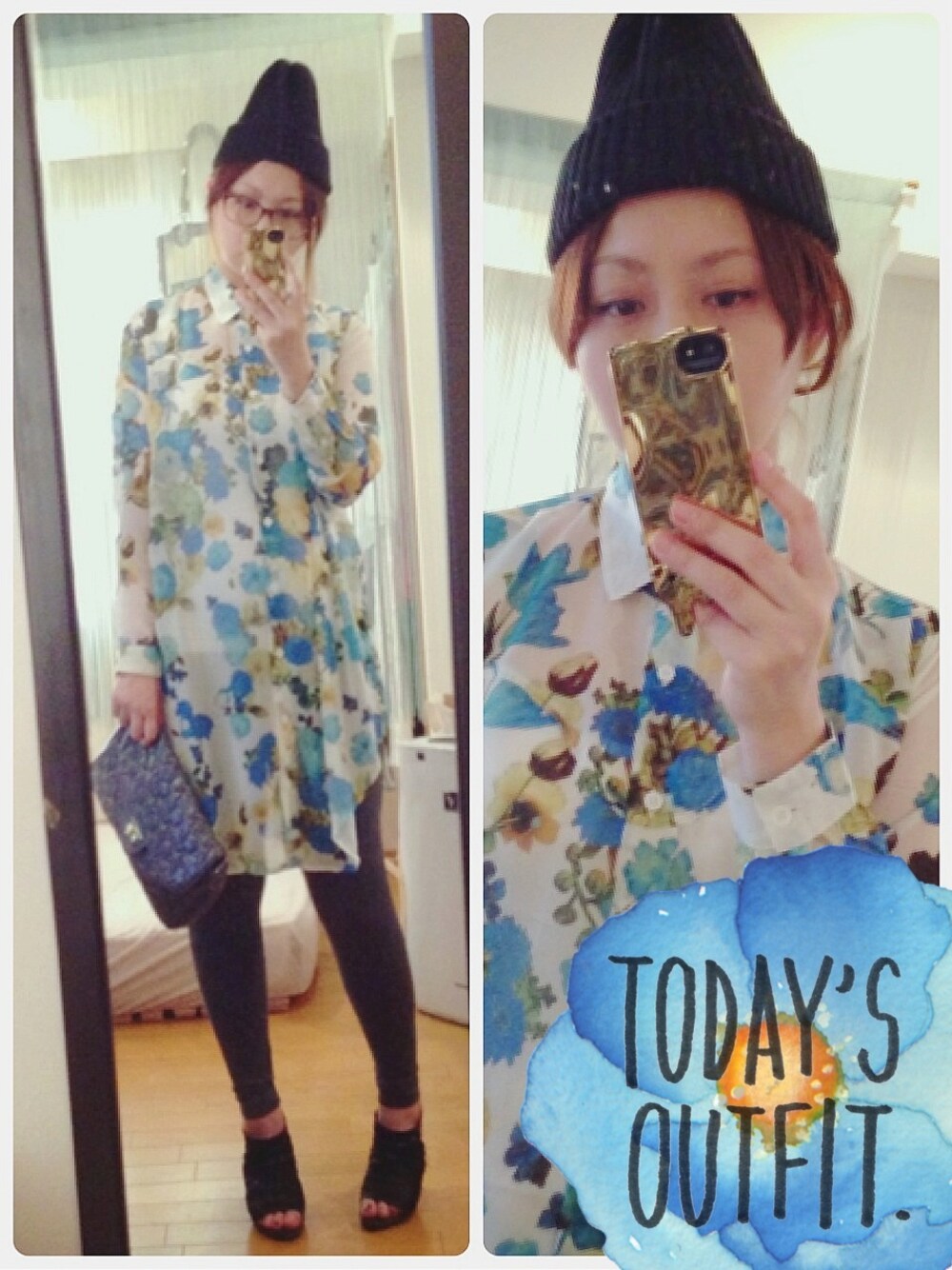 meeのワンピース「花柄シャツワンピ」を使ったコーディネート