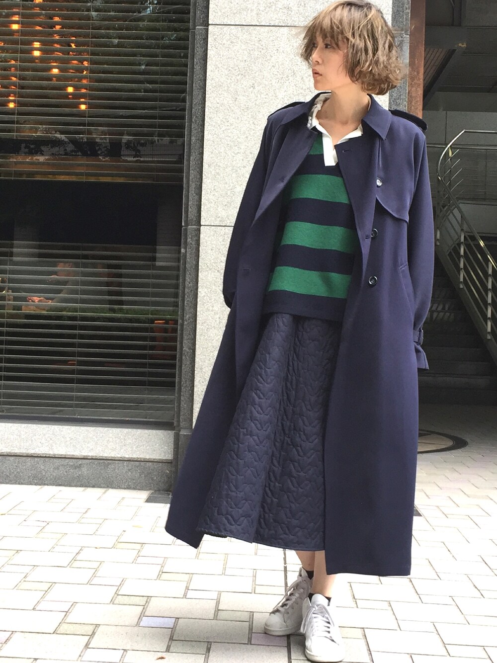 曇りのや雨の日にはやっぱりトレンチ。 AMERI別注のトレンチ、ネイビー色がベーシックで長く着られそう。 今日はケープを外してシンプルだけど、ケープで気分を変えられるのも飽きの来ない仕掛けとしてアメリらしくて好きです。