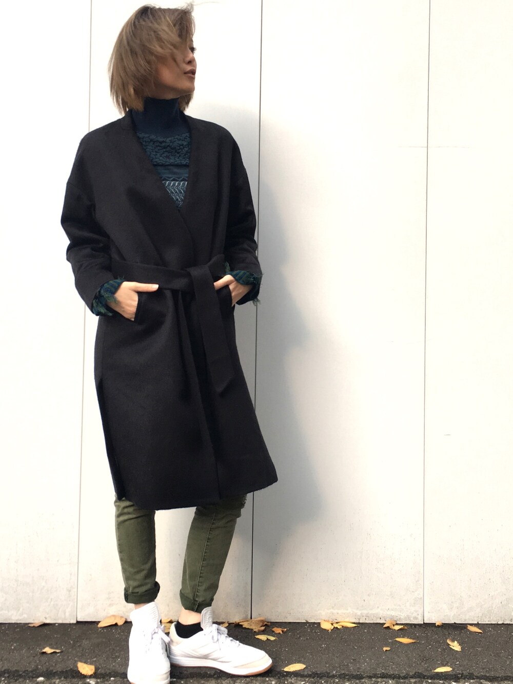 ちょっとした羽織りが必要になってきました。。。 風さむー。 さらっと羽織れるガウンスタイルのコートにタートルで風をシャットアウト! カジュアル派な私には程よいきちんと感が良い感じ。見た目だけでも落ち着かないと…(笑)