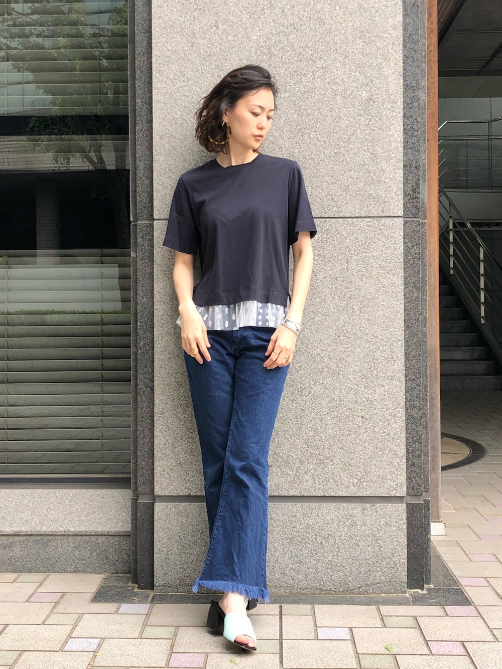 全身ブルー系コーデ。
