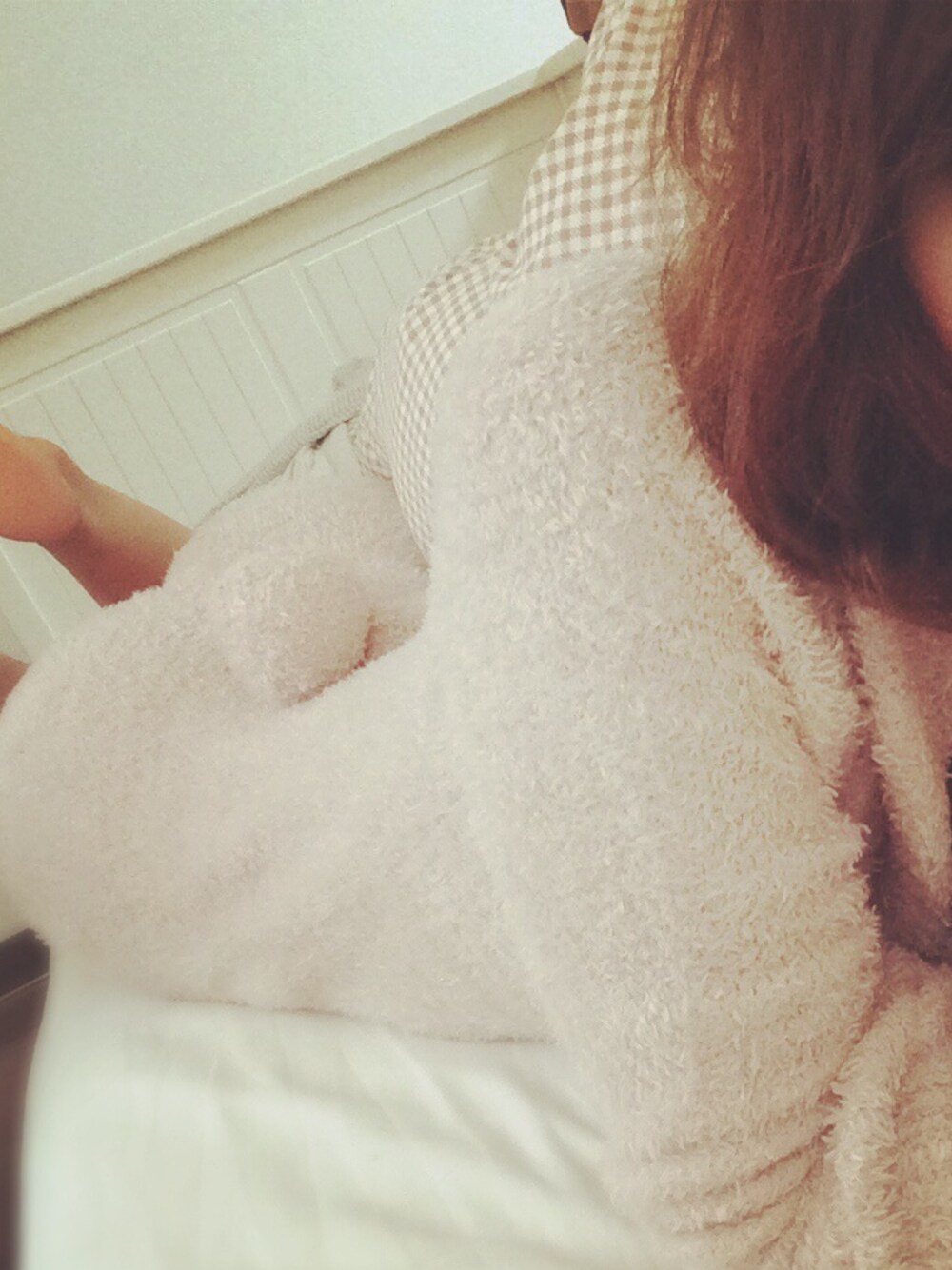 ピンク系のルームウェア/パジャマを着用したレディースの秋コーディネートの1枚目の写真