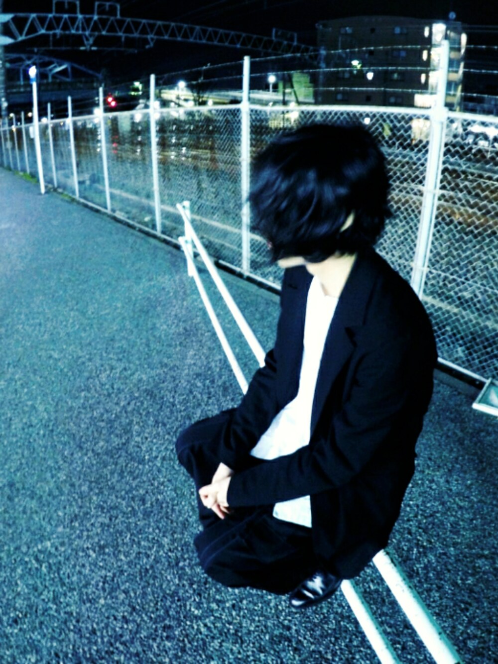 ブラック系のテーラードジャケットを着用したメンズの春コーディネートの1枚目の写真