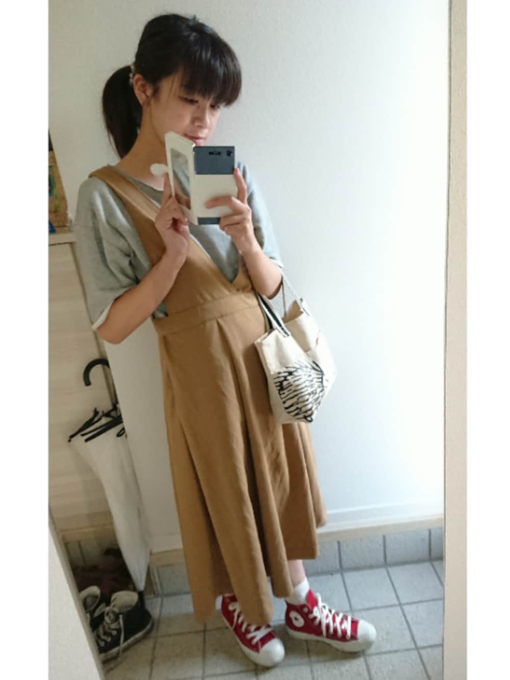 今日は晴れた~☀️ いつも見ていただき、ありがとうございます✨ どーも✋1年って早いなぁ。。しほです。 撮り溜め消化ww スウェットトップス×ジャンパースカート🌼 メンズアイテムにスカートとか会わせるの好き👍 赤コンで差し色🌼 ちょっとしたお出掛けにははりねずみトートがベスト✌️ いいね!お気に入り、フォロー、コメントお待ちしてます😚 Instagram→silver-life