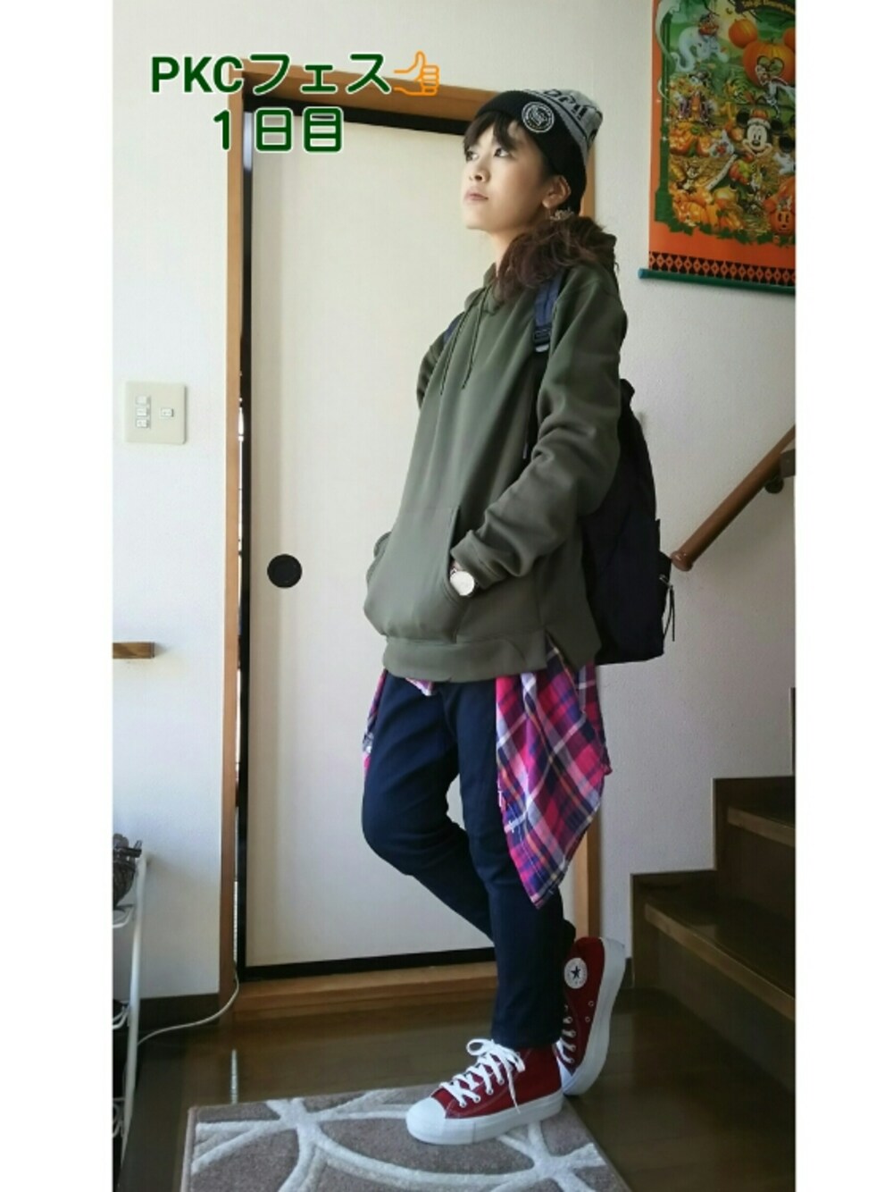 皆さん、PKCしてる~⤴? いつも見ていただき、ありがとうございます✨ どーも✋この時期は8割ニット帽被ってるshihoです😆 PKC(パーカーコーデ)フェス開幕⤴ フェスは基本0時ジャストアップのけんぞーくんを皮切りに、1日目から多くの方に参加して頂いてます✨ う、嬉しい😂 後ほど皆さんの所にお伺いしますね😃 フェスは6日まで開催してますので、ぜひよろしくお願いいたします✨ タグは『PKC(パーカーコーデ)フェス』です👍 お間違いなく☺ 1日目のコーデは… 仲良しぽんくんのコーデが可愛くて、昨日WEGOで同じパーカー買ってやっちゃいました😃 ぽんくんのコーデは小窓で⤴ カーキのパーカーにチェックシャツ腰巻き👍 カーキとピンクって意外に合うんですね✨ WEGOのパーカーは裏起毛だから今の時期の天気が良い日にはちょうど良い✌ パンツはデニムサルエルパンツで適度にゆるさを出してみました✨ テーパードだからゆるすぎず、きっちり感も出ますね😁 パーカー×ニット帽って好きでよくやっちゃう。 今日は横山裕くんデザインの関ジャニ∞ライブグッズのニット帽✌ Daniel wellingtonつけて、赤コン履いて、リュック背負って出来上がり☺ …色味はぽんくんのコーデよりカラフルになっちゃったけど💦 思い付きな割りに、意外に色味まとまった気がする😁 赤コンも暗めだから合うのかも😃 ちなみに、アイシャドーもカーキです😆 さーて明日はどーしよーかな? 仕事だし、夜は研修だし。。。 研修パーカーコーデ考えようかな?😆 良かったら、いいね!、セーブお願いいたします😃 フォロー、コメントお待ちしてます✨ Instagram、プロフィールからいけるのでぜひ。 今回とバージョン違いInstagramに載せます☺