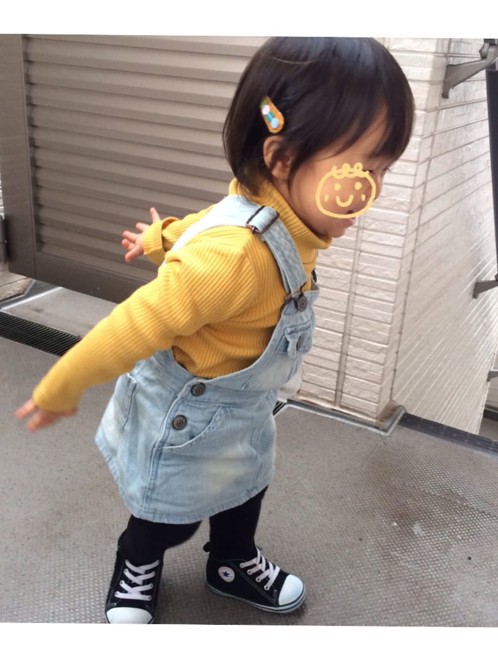 いただきもののサロペットを着ました♪飛行機のポーズです♪