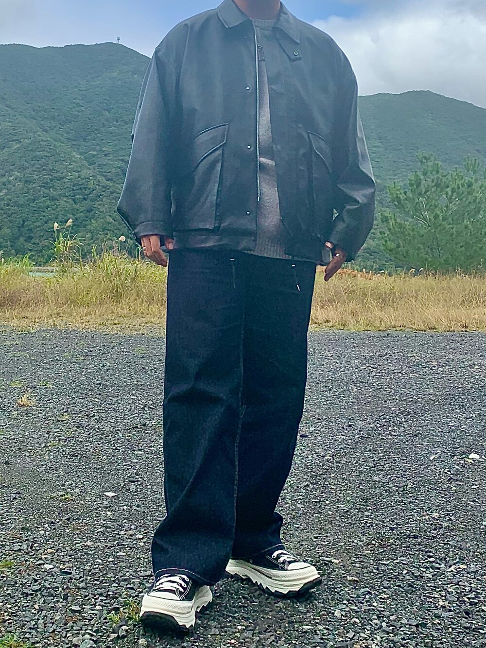 こんにちは! む〜です!😊 やっと島が寒くなってきてアウターが着れる季節になって来ました🍂 なので、前からしたかったWYMのレザージャケットを使ったコーデをご紹介します!✨️✨️ <アイテム詳細> outer→ WYM tops→ ADRER pants→ UNIQLO shoes→ CONVERSE ちなみに、パンツはUNIQLOのレディースのバギーパンツデニムなんですけど、シルエットが神すぎるので着回しまくってます✌️ それでは!👋