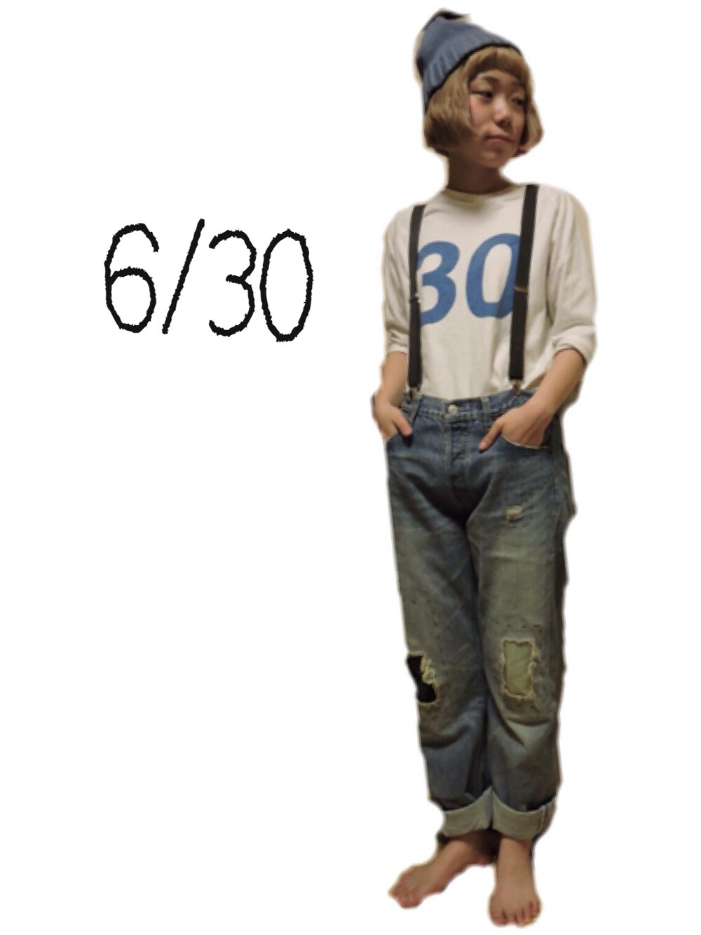 今日はほとんど古着こーでです ☻ いくら夏用?でもニット帽は暑かったです。。蒸れる。。 またもや素足ですみません😗👣 サスペンダーってホントに難しい。。