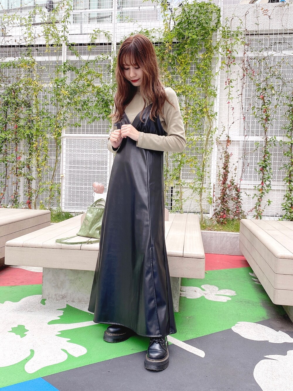 みゆのワンピース「【オリジナル】フェイクレザーワンピース」を使ったコーディネート